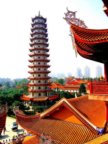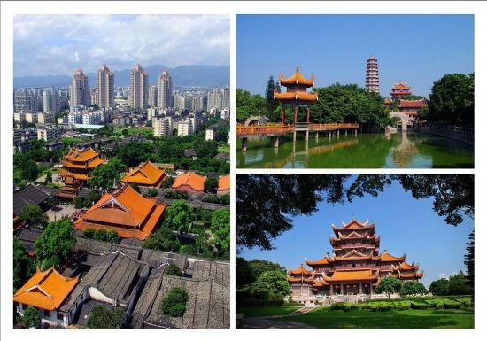 西禅寺名列福州五大禅林之一,为全国重点寺庙,位于西郊怡山之麓,工业路西边南侧,巍峨而壮观。古刹大门坊柱上镌刻一副楹联:“荔树四朝传宋代,钟声千古响唐音。”这是清代周莲撰写的联句,点明“西禅寺”是唐朝的古寺。