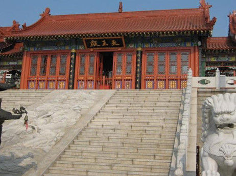 辽宁大连玉佛寺玉佛寺位于甘井子区红旗镇柳树街成园温泉山庄的东北侧山坡上,玉佛寺为三层大殿结构,气势虽不说能比得上名山古寺那样宏伟壮观,但琉璃红瓦气势不凡。大红灯笼悬挂于庙檐之下,随风飘舞着金黄色的灯穗。与之相对应的是在大门上侧的黑底金字的牌匾,书写着“天王殿”单个刚劲大字。